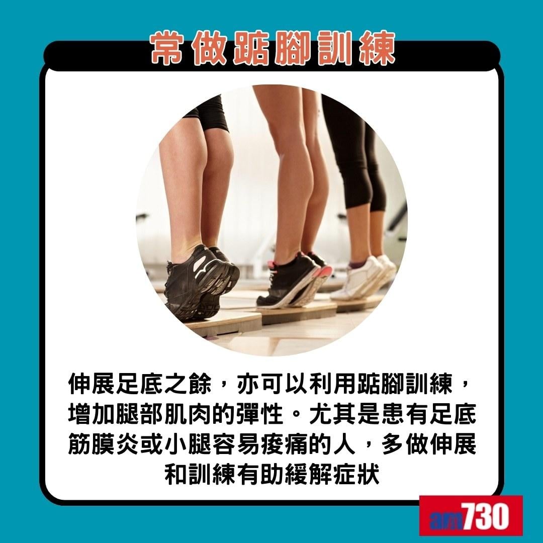 足底筋膜炎預防及治療|(am730製圖) 足底筋膜炎預防及治療|正確的步姿(am730製圖) 足底筋膜炎預防及治療|多伸展足底(am730製圖) 足底筋膜炎預防及治療|常做踮腳訓練(am730製圖) 足底筋膜炎預防及治療|注意鞋底磨損(am730製圖) 足底筋膜炎預防及治療|抓毛巾(am730製圖) 足底筋膜炎預防及治療|站立提踵(am730製圖)