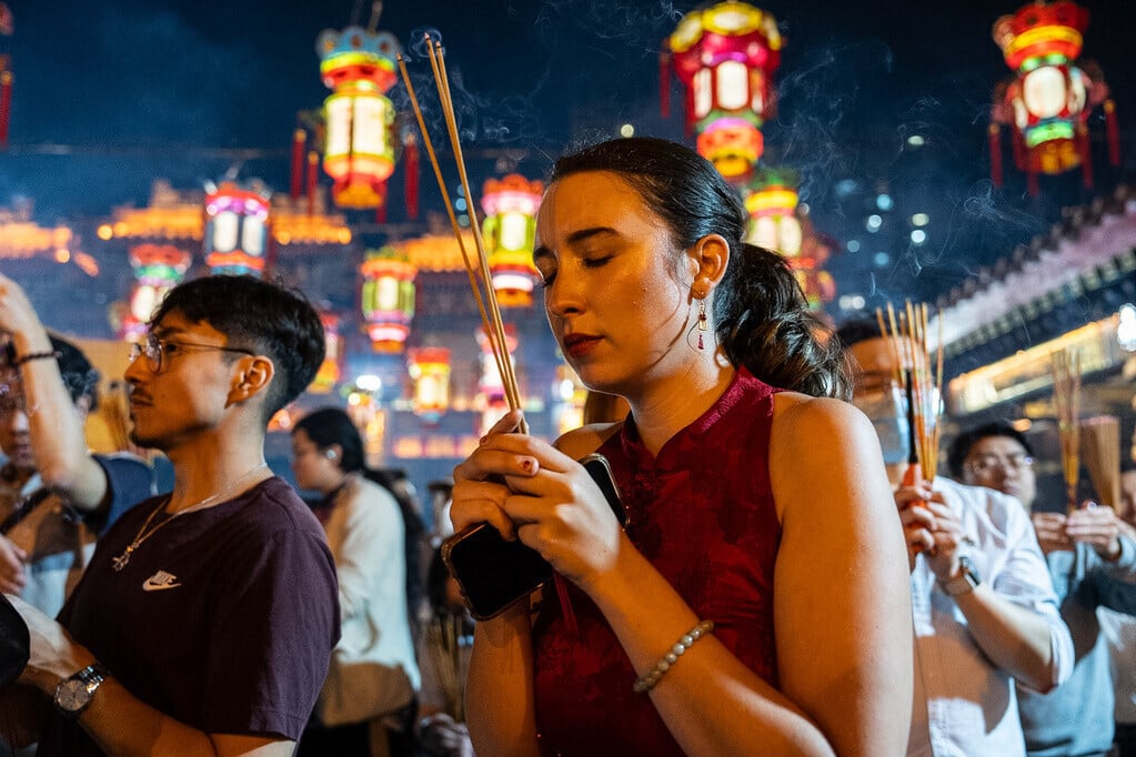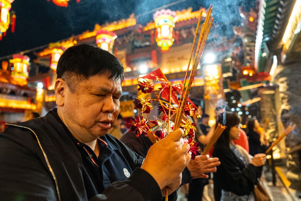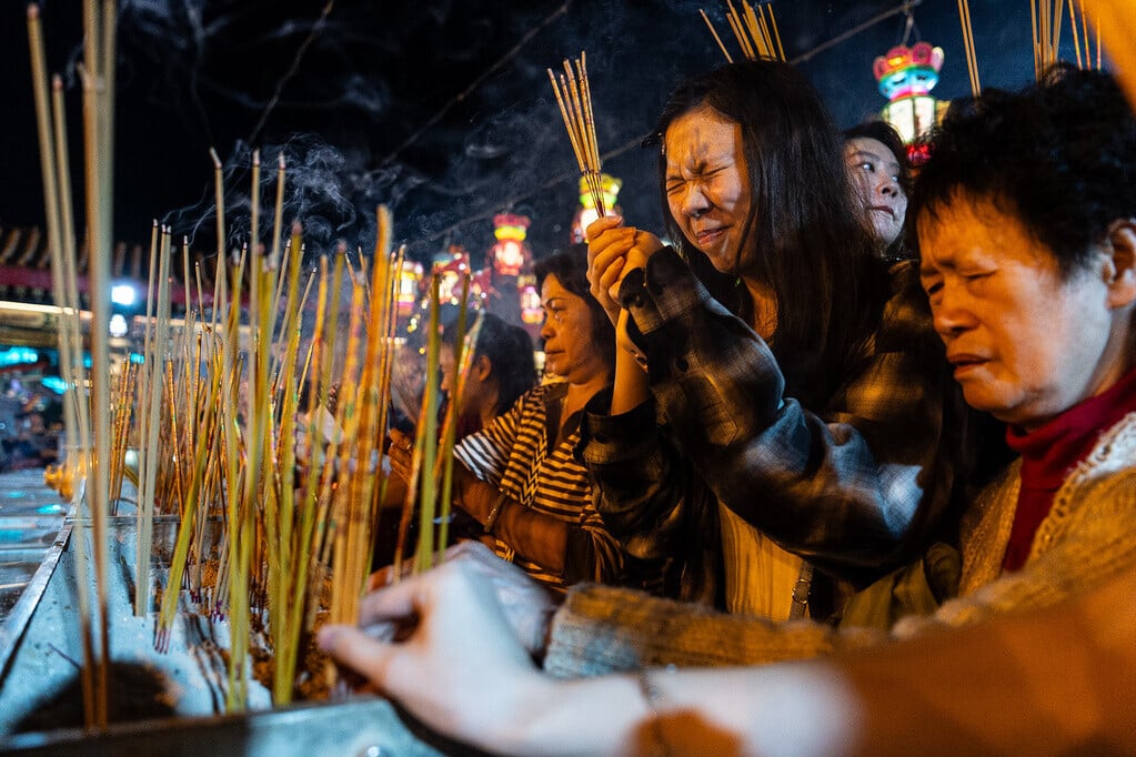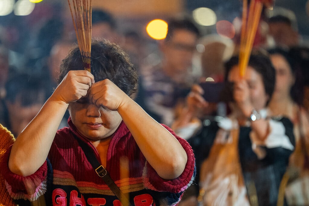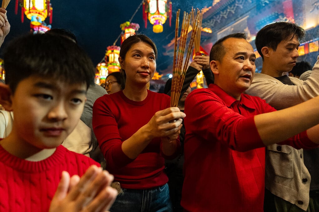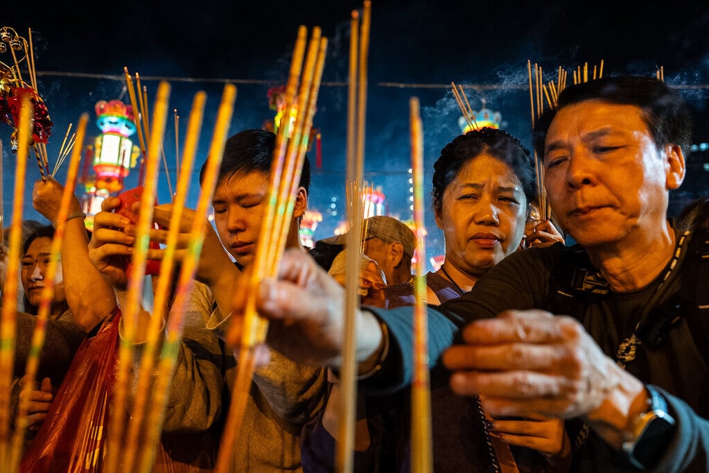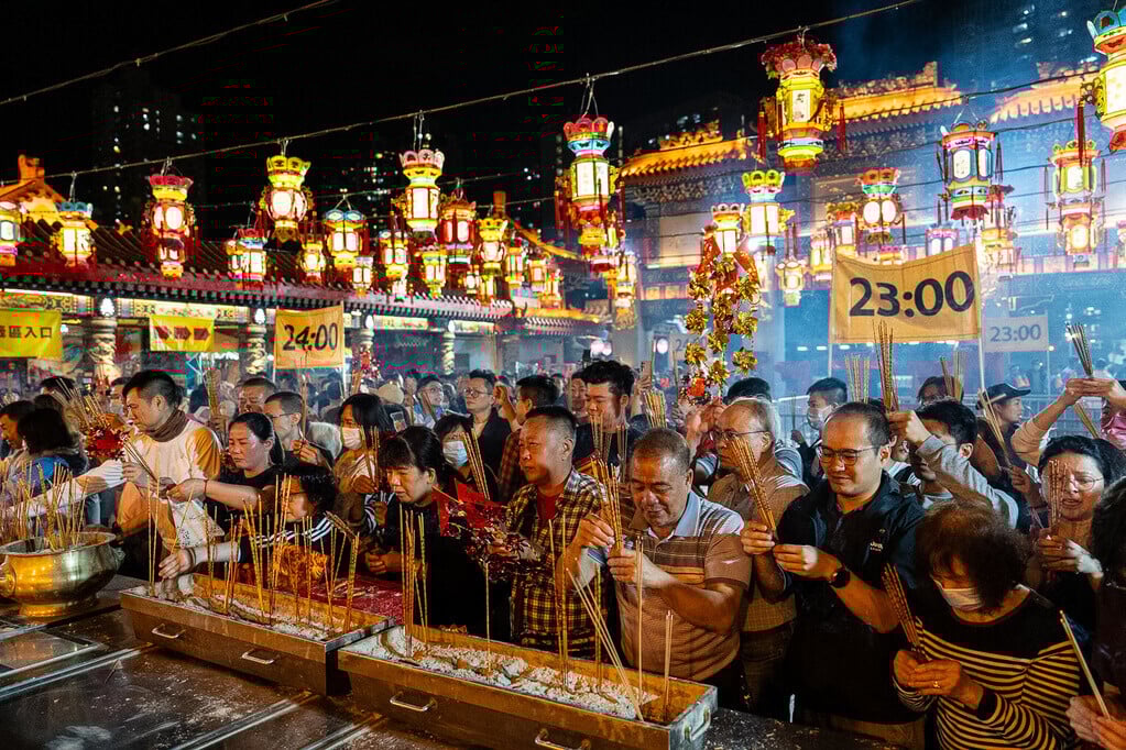農曆新年2026|踏入子時,黃大仙祠大批市民上馬年頭炷香(美聯社)