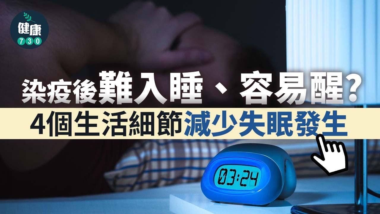 衛生福利部北醫院中醫科主治醫師賴博政說明,新冠肺炎除了以上呼吸道為主的症狀舉凡咳嗽、喉嚨痛、鼻塞、流鼻水、打噴嚏外,睡眠困擾也是其一。根據研究指出,約有25%至33%的病人因為確診後造成睡眠品質不佳。一般而言,睡眠障礙有分三大類:一、入睡困難,二、睡後容易醒,三、睡眠品質差,容易作夢,睡不飽,隔天精神差,睡得時間變短等。