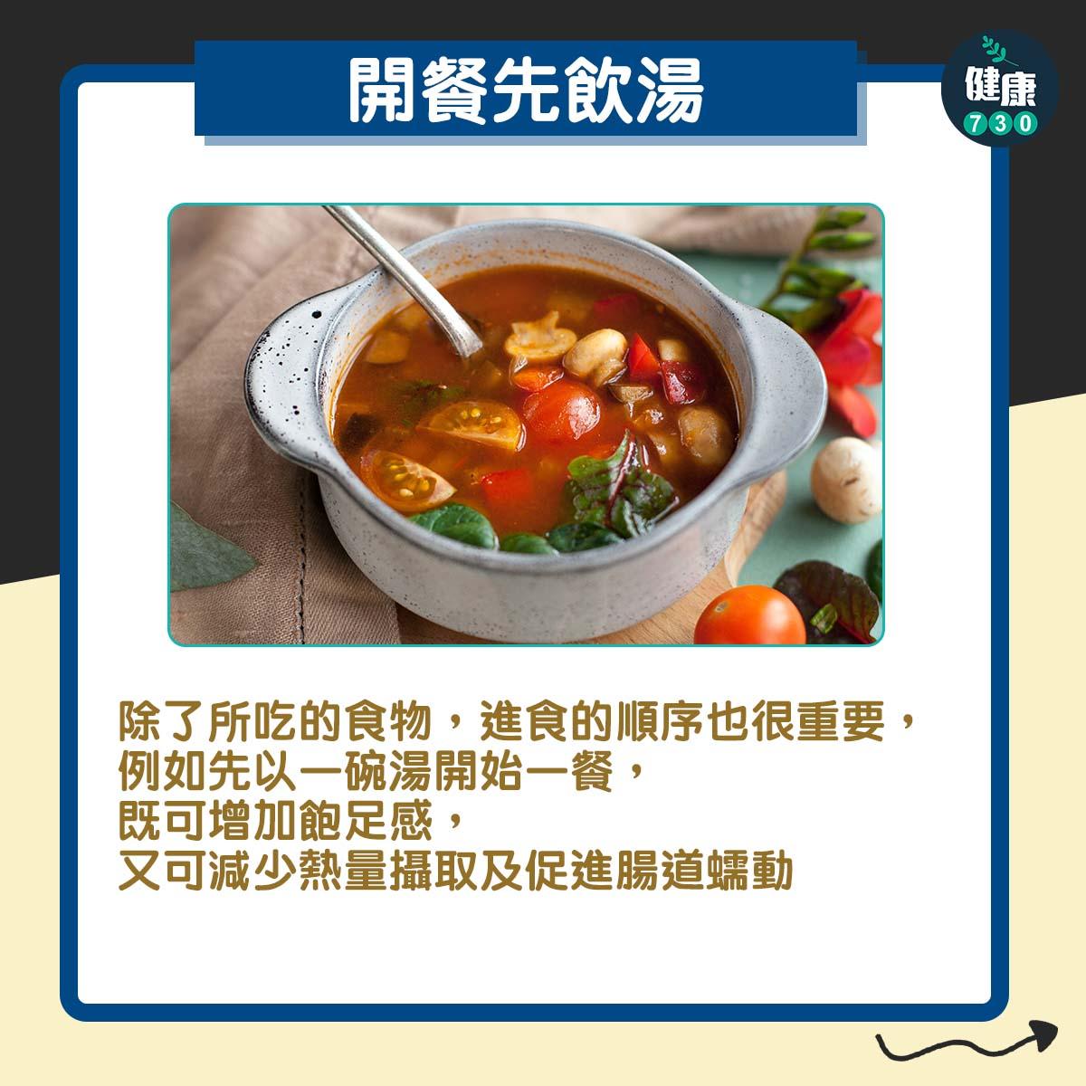 另外,有些食物有助抑制食慾,例如無糖走奶的齋啡,提神之餘也可促進代謝,但不要過量以免影響睡眠。不喜歡咖啡可以綠茶代替,都有抗氧化及抑制糖類吸收效果,而多飲水也對維持健康十分重要。其他食物如優質蛋白質、各式蔬菜及低升糖水果,都能補充身體所需,而又可以滿足口慾。