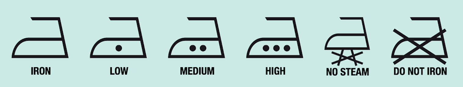 如果需要熨燙衣服,務必看洗標上的這個標誌,就是一個熨斗的形狀,參考相關指示下去操作,才能確保衣物的安全!一般而言,依材質和厚度的不同,需要的熨斗溫度和手法也會不一樣,例如低溫熨燙約控制在110°C以下,適用於人造纖維、絲等材質;中溫約為150°C左右,適用於毛類材質衣物;高溫約為200°C左右,適用於棉麻材質。