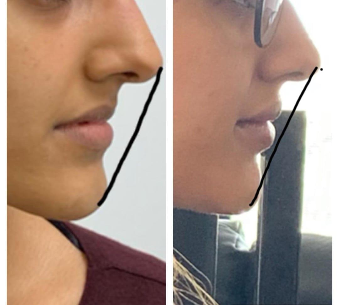 陳彥綦醫師指出可從「美觀線」(Esthetic line)作為標準,所謂美觀線指的是從鼻子的最前端與下巴最突點劃一條線,上下唇落在線上是公認比較好看的臉形,若下唇位置太過後縮則為「小下巴」,萬一超過太突出,就容易成為「鞋抽」臉形。