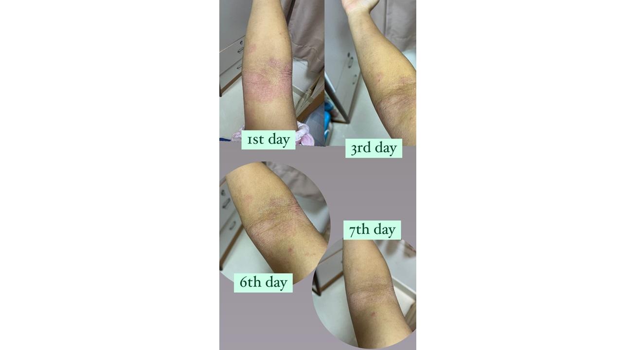 陳小姐使用STELATOPIA+有機認證特強止痕補脂膏 第一天至第七天的肌膚情況。