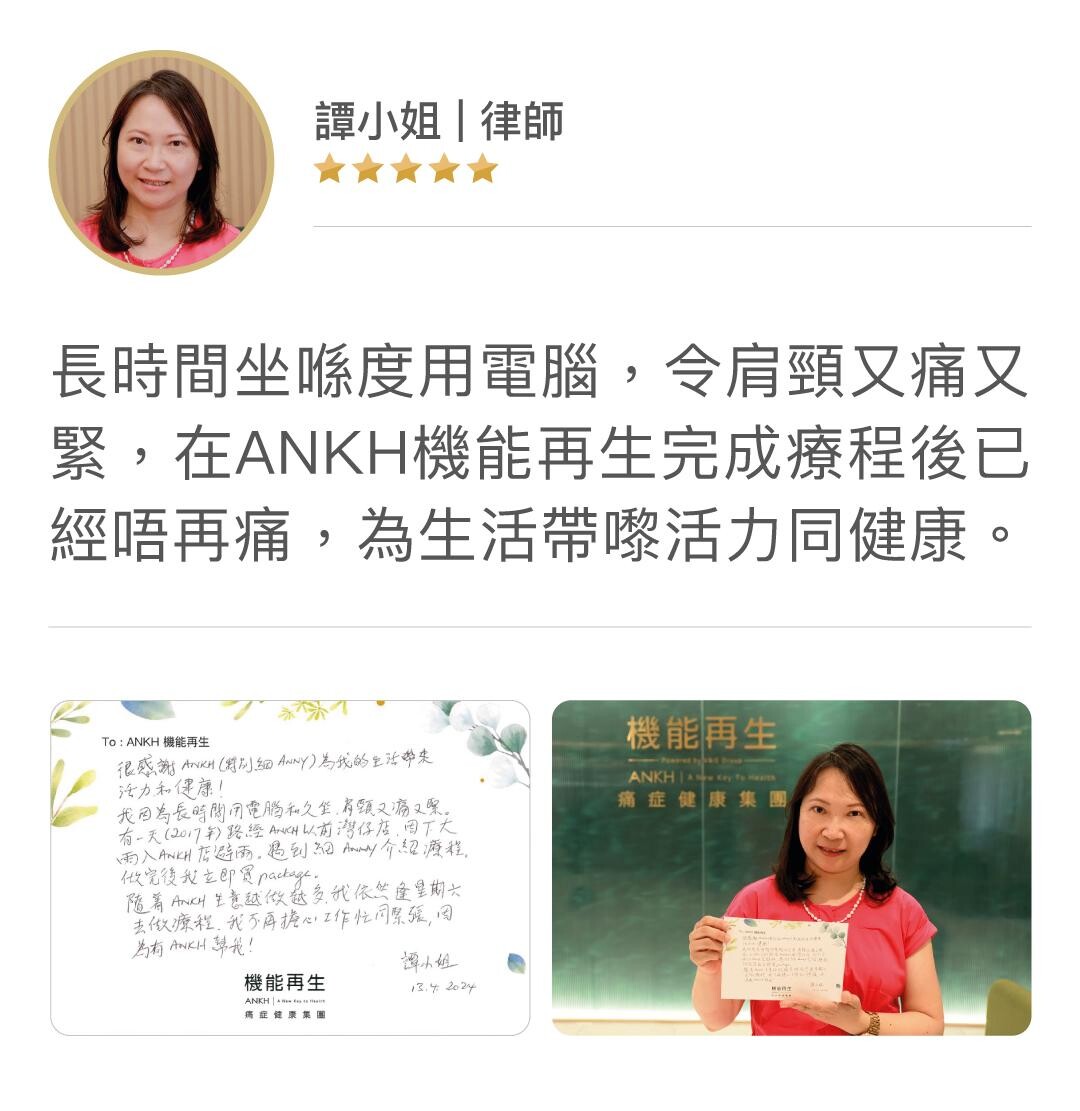 很多現代都市人和她們一樣面臨不同健康質素問題,想知道如何提升身體機能、御痛強身,可參看此連結https://www.ankh.com.hk/御痛強身服務