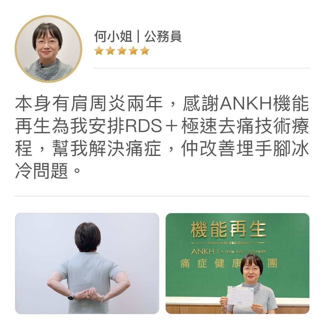 ANKH機能再生有16年去痛經驗,在它們網頁內能找到不少客人的真客去痛實證影片,影片中這些客人們都樂意分享由當初受痛症困擾到成功去痛的經歷。