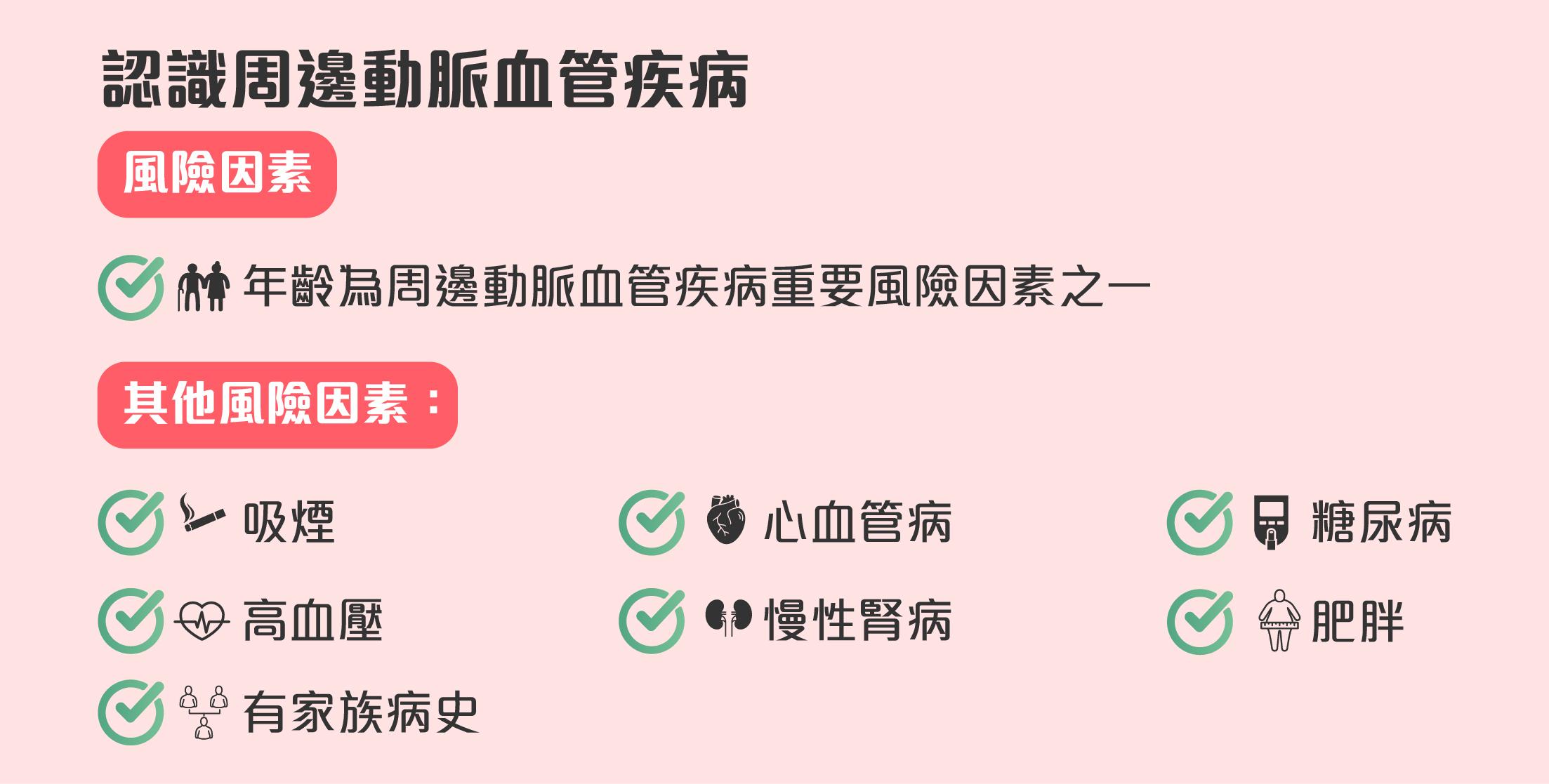 要防治頑疾,深入了解是第一步;血管外科專科醫生吳偉健醫生指出,周邊動脈血管疾病,主要影響患者下肢,當有斑塊堆積在周邊動脈血管、或血管硬化造成狹窄、阻塞,而導致下肢組織無法獲得充足的血液、氧氣與養分,繼而有機會引起組織缺血與壞疽,實在不容忽視。