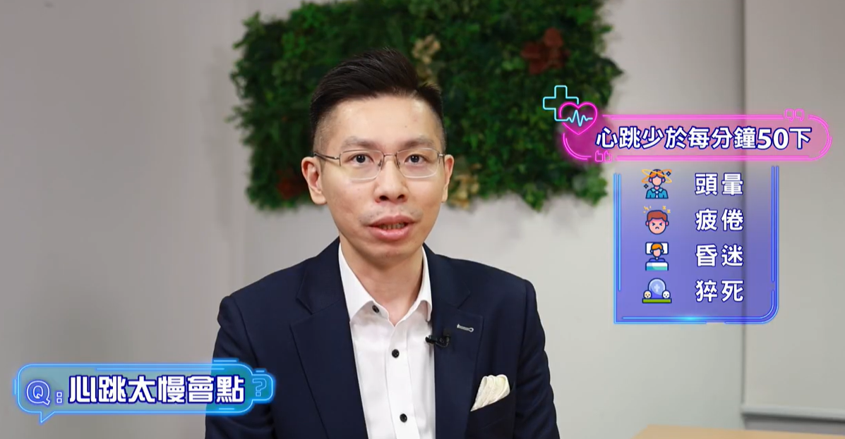 正常心跳頻率是每分鐘50至60之間,如果低於50下,可能會出現頭暈、疲倦、昏迷甚至有危及性命的風險。