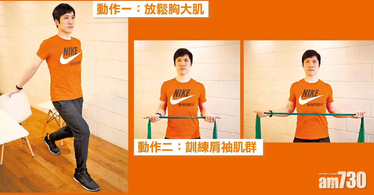 呂穎兒表示,「預防肩關節夾擊綜合症,我們日常需要保持肩膊位置平衡,抬頭挺胸,讓上半身的支架重新平衡,就可以減輕頸椎和肩膊的壓迫問題。」另外要強化肩部及身體質素,讓肌肉、軀體可以運作得更好,以下呂穎兒推介兩個動作,放鬆胸部及肩膊前方繃緊的肌肉,並加強肩袖肌群。
