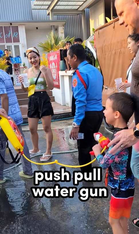網名fairyfitmama的新加坡籍女事主在Instagram(IG)上公開經歷,希望其他人引以為鑑。她與澳洲籍丈夫於4月17日赴泰旅遊,並參加潑水節,夫婦在當地買了兩支玩具手槍給兩名孩子玩。根據她在片中展示的照片,涉事的並不仿真度高的水槍,而是有膠喉連接背包式水箱的的卡通水槍。
