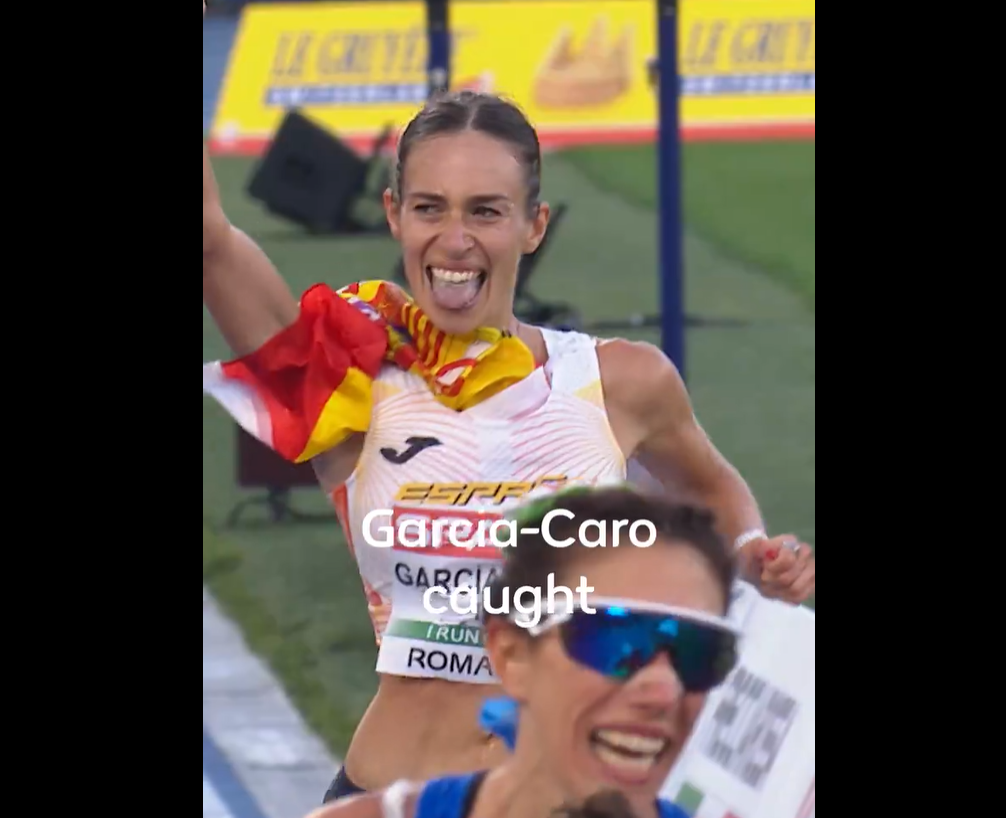 歷史不斷重演,所講的是運動員衝線前過早振臂慶祝,遭對手後來居上的教訓。最新是西班牙競步選手Laura Garcia-Caro,在上周五的歐洲田徑錦標賽20公里競步比賽中,於最後階段,她以為自己穩獲銅牌,披著國旗兼興奮伸脷。正邁向終點衝線時,剩下最後約2米,她擰面一看,才察覺烏克蘭對手Lyudmila Olyanovska已到達其身旁,甚至超越。鏡頭拍下Garcia-Caro震驚擘大口,後悔不已的表情。