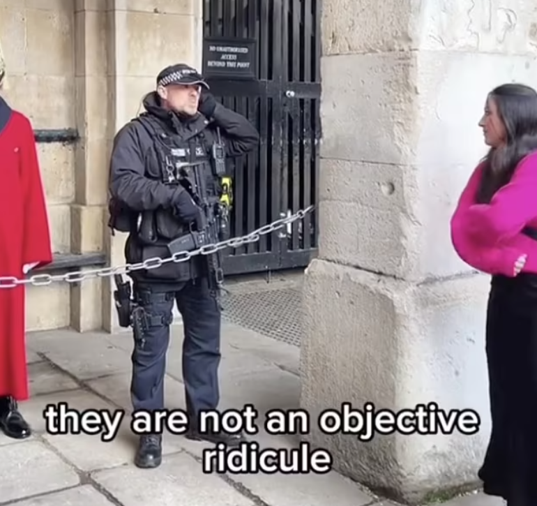 去英國旅行不少人也會對御林軍深感興趣,但記得不要做出丟架的事。近日網上流傳幾名美國女遊客當眾取笑及呼喝御林軍的片段,可見她們最終被一名持槍特警嚴詞斥責,頭耷耷敗興而回,網民紛稱大快人心。