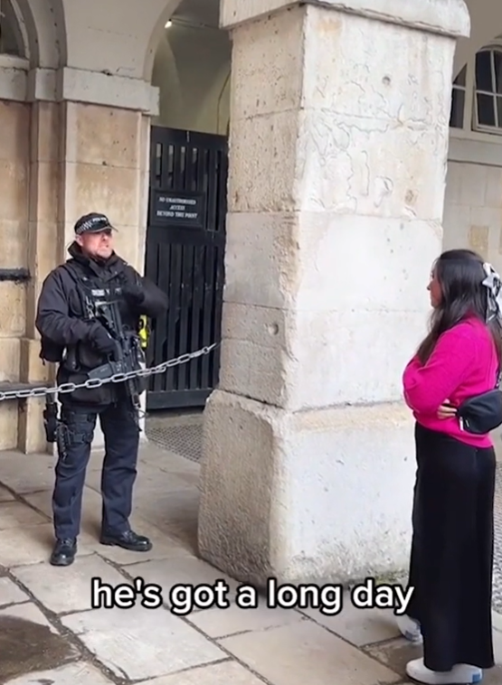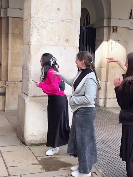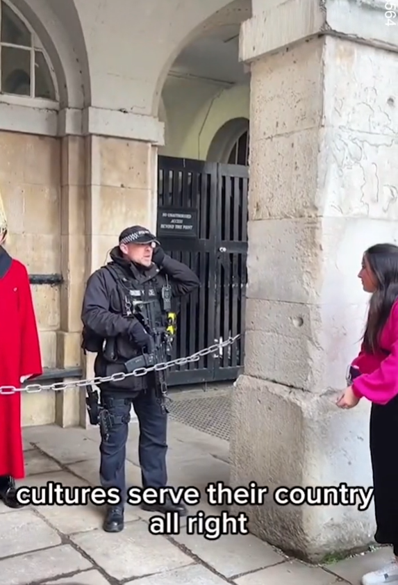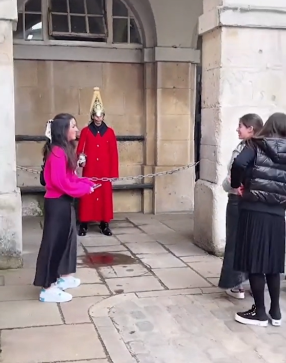 該名御林軍曾輕輕搖頭,但一直保持冷靜,未幾一名持槍特警從旁步出,該批美國女遊客未知即將會被罵,還歡呼尖叫,又開心得跳起。特警向御林軍了解狀況後,轉身向該批女子說︰「這些士兵正在為國家服務,對嗎?他們認真工作。他們負起保護這座設施的責任。他們並非給人取笑的對象。」(These soldiers serve this country, alright? They take the job seriously. They are responsible for protecting this facilty. They are not an object of ridicule.)