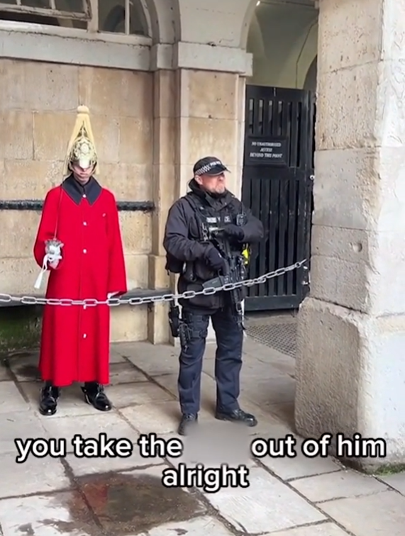 該片段由用戶kallum643564在TikTok發布,旋即錄得逾1,800萬次瀏覽。起初可見6名女遊客向著該名隸屬御林軍的皇家近衛騎兵(Household Cavalry)不斷叫囂,有人胡亂猜測其名字,叫他「Alex」,並促他動身,說「Alex我們要行了」,期間又有人模仿軍人步操,又不時「哈哈哈」大笑。