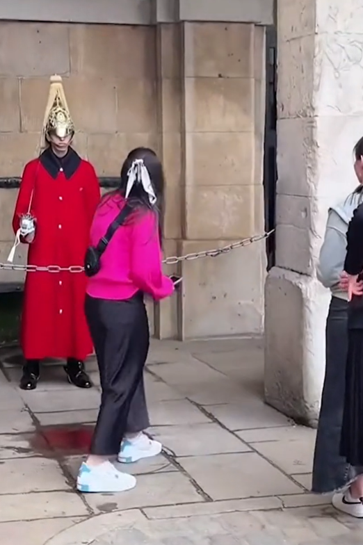 美國女遊客騷擾御林軍遭訓斥過程︰