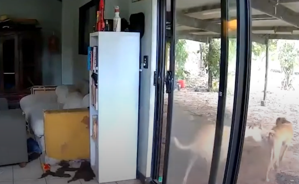 澳洲北領地一名議員只是與未婚妻出外食飯,豈料回到家卻驚見平房寓所內一團亂。他看見動物監視鏡頭傳到手機的片段,發現兩隻狗狗撐開客廳大門走到戶外,然後「引馬牛入室」。片段最尾可見那名議員看見一屋亂況一臉無奈,其中一隻狗狗像知到闖禍,頭頂主人撒嬌。