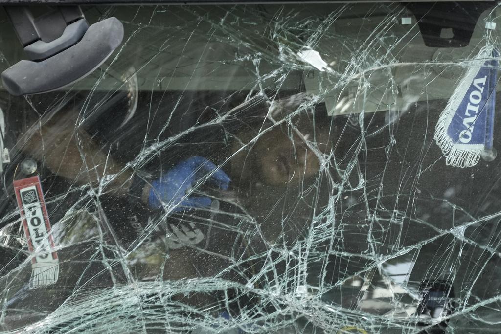 貨車猛撞巴士站後,車頭變形。(美聯社)