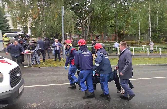俄羅斯中部城市伊熱夫斯克(Izhevsk)發生校園槍擊案,一名槍手今日闖入約有1,000名學童的學校內開槍,造成最少13人死亡,當中包括7名兒童,年齡介乎7至16歲。另有14名學童和7名成年人受傷。當局指,槍手最後吞槍自殺,動機未明。俄媒上載的片段可見,學童在大樓內奔跑疏散,沿途可見有保安人員。另有片段顯示,課室地下有鮮血,玻璃窗有彈孔,以及學生躲在桌子下。另有相片見到師生躲在房內,用雜物阻擋門口。有報道指,槍手是不想往烏克蘭戰場的徵兵。