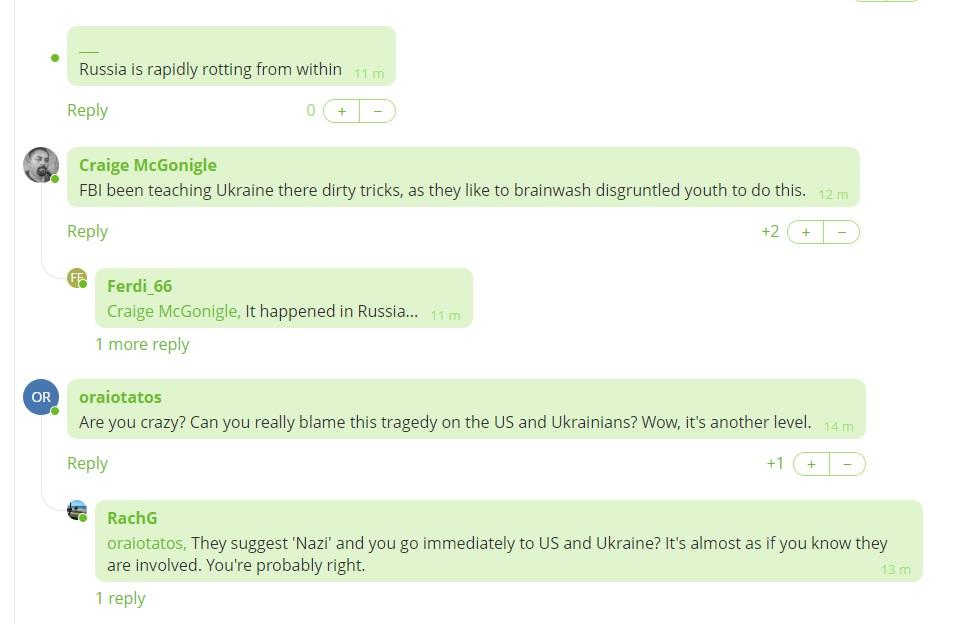 調查當局指槍手動機未明,但俄羅斯近日因普京下令動員30萬後備軍往烏克蘭戰場,正處於多事之秋。有當地傳媒報道,槍手是最近動員令被徵召的士兵,他並不想前往烏克蘭戰場。另外,在西伯利亞一間徵兵登記中心,有槍手闖入開槍,造成數人受傷,有報道指一名官員命危。據悉,槍手不滿「好友」被徵召入伍上戰場。