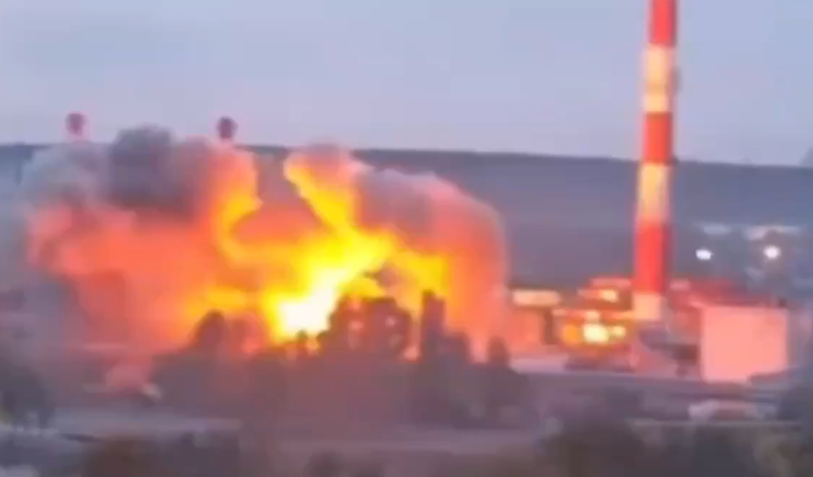 俄羅斯別爾哥羅德州發電廠遭導彈擊中產生巨大火球。(互聯網)