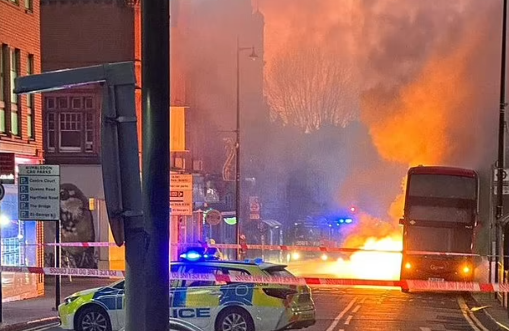 事發於早上7時20分,大倫敦區溫布頓登市中心一輛雙層巴士起火,火勢非常猛烈。3輛消防車及15名消防員趕到現場,片段可見大量濃煙源源冒出,火舌在車尾噴出,警方敦促司機避開該區域。目擊者Amy Foster表示,消防員很快便到場,指首先起火的是車尾位置,大火之後燒穿車尾及車頂,「他們花了很長時間才控制住火勢,火焰從巴士後部飛出」。