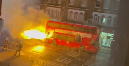 英國倫敦一輛電動雙層巴士,於周四早上繁忙時間突然起火,引起混亂,目擊者稱聽到一下「巨大的爆炸聲」,令其恐懼不已。