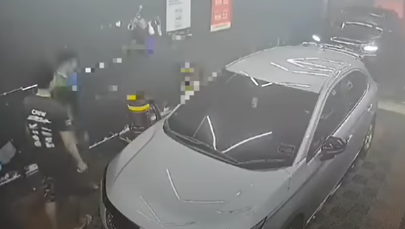 閉路電視片段顯示,一名綠衫男子早在店外徘徊,期間曾嘗試打開一輛在店外的私家車車門不果,之後便走進洗車店內。綠衫男進店後,二話不說坐上事主(藍衫)的本田思域內。