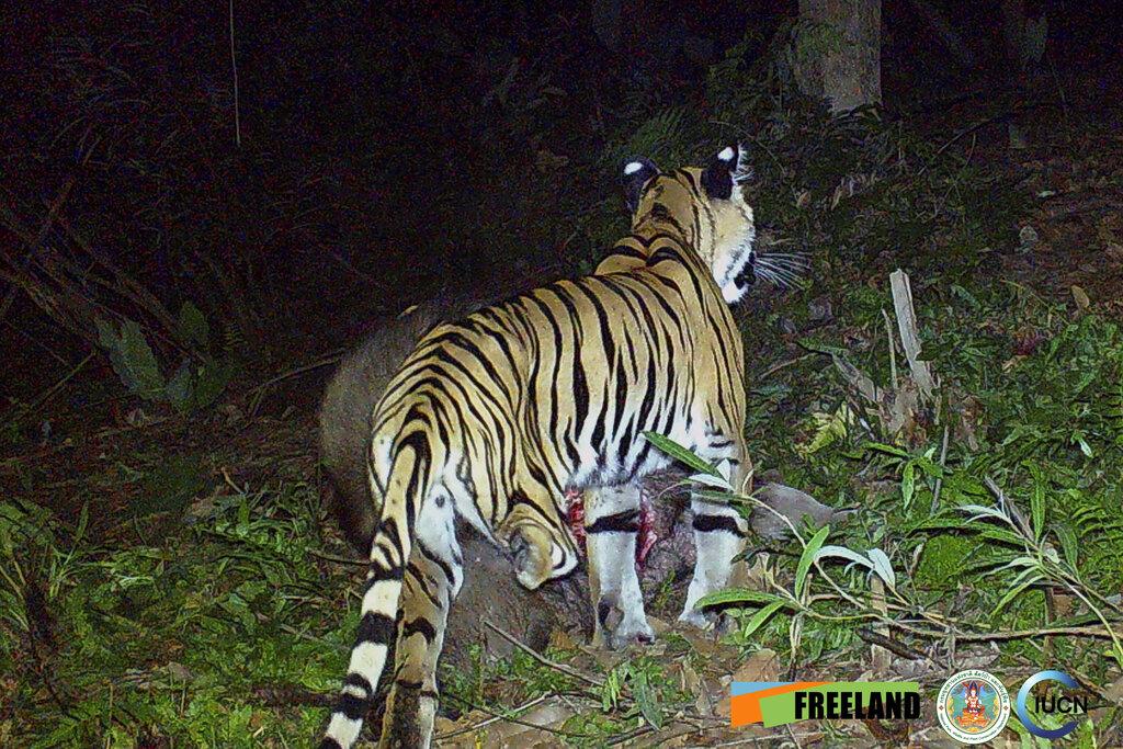 泰緬邊境一隻野生老虎被發現後腿截肢,僅餘3腳走路,保育組織正全力營救。英國《每日郵報》報道,野生動物保護組織「Freeland Thailand」在泰國西部接壤緬甸邊境Khao Laem國家公園裝設的生態攝錄機、於周日晚(6日晚)拍到的片段中,發現這隻3腳虎的蹤影,當時,老虎在森林裡一拐一拐地走路、吃水牛屍體。
