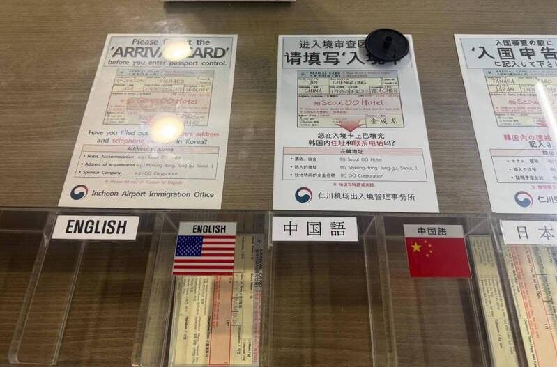 有網民稱,在仁川機場找不到中文版入境卡。(互聯網)
