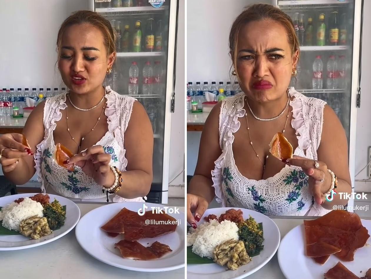 片中,33歲的Lina Mukherjee朗誦一段伊斯蘭祈禱詞,經翻譯意思是「以真主之名」,之後便大口咬下酥脆的豬肉乾,一嚐後似乎覺得豬肉味道古怪。影片今年3月初上傳TikTok,累計數百萬次點擊觀看。可是,印尼的主要宗教是伊斯蘭教,伊斯蘭教禁吃豬肉,有民眾隨即檢舉Lina拍下吃豬肉影片。