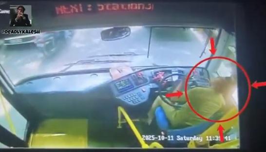 🚨Bengaluru, Karnataka: Yesterday, near Chinnaswamy Stadium, a bus driver suffered a heart attack and lost control of the bus, crashing into 9 vehicles. The entire incident was captured in the bus’s CCTV. pic.twitter.com/5ptRSoHgtG