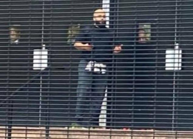 兇徒懷疑綁有炸彈腰帶,教堂內的人從小窗監視他。(互聯網)