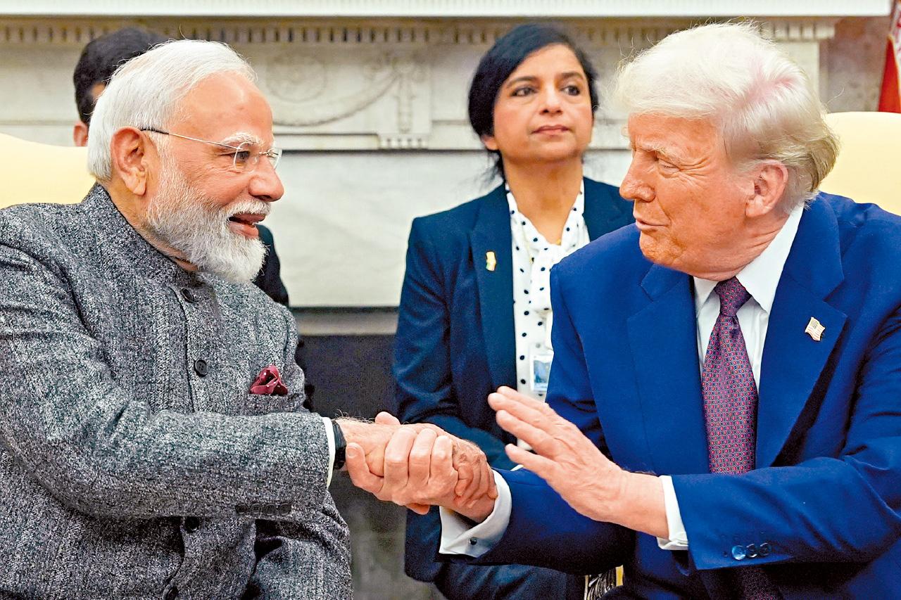 特朗普稱莫迪已承諾停買俄石油,圖為兩人今年2月在白宮會面。(資料圖片)