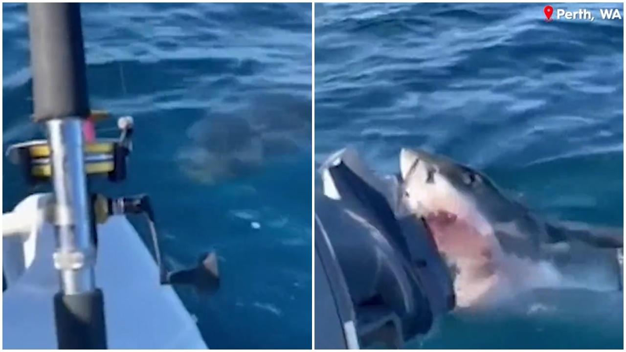 The shark circled the boat for over an hour, attempting to attack the motor multiple times. #9News