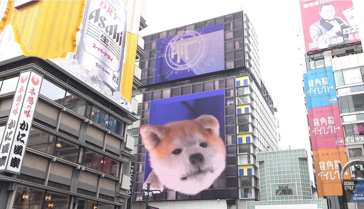 大阪道頓堀新景點3D螢幕廣告,今期主角是秋田犬。(互聯網)