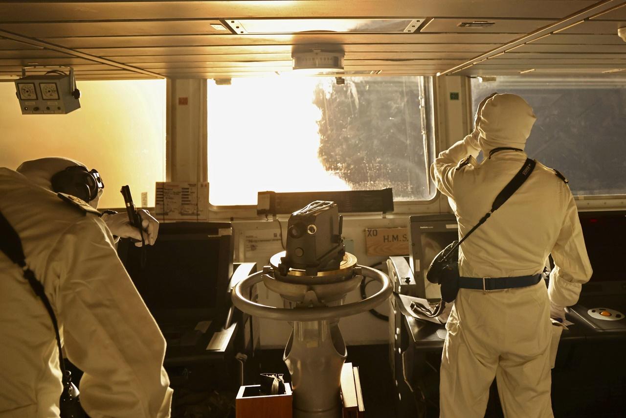 英美攔截胡塞武裝18架無人機和3枚導彈。(英國海軍。AP)