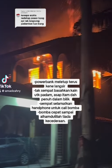 馬來西亞一對夫婦周六(21日)凌晨險被突然爆炸、俗稱「尿袋」的充電寶/充電器奪命,其大宅則切慘被大火燒通頂。