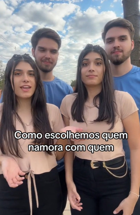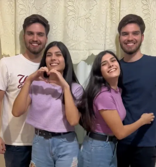 在TikTok上有6萬多名粉絲的巴西雙胞胎網紅拉里莎(Larissa Lazzarin)、萊蒂西亞(Leticia Lazzarin)近日在社交媒體獲得極大關注,原因是長相極為相似的姐妹倆的男朋友,竟然同樣是一對外貌、神韻極度相像的雙胞胎兄弟。而拉里莎也透露,由於對方外型實在長得太像,還曾不小心搞錯男友,影片短短3天就獲得1200多萬人次觀看,引發熱議。