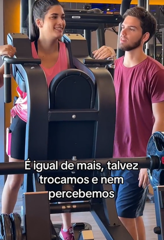 從TikTok的影片中可以看到,拉里莎拍攝姐姐萊蒂西亞正在健身房和男友菲力普(Filipe Orsato)聊天,她表示,「那個人是我雙胞胎姐姐,旁邊的人應該是我男朋友,但是我不確定」 ,但她轉頭一看才發現男友盧卡斯(Lucas Orsato)就在身後,眼前的男生則是姐姐的男友菲力普。