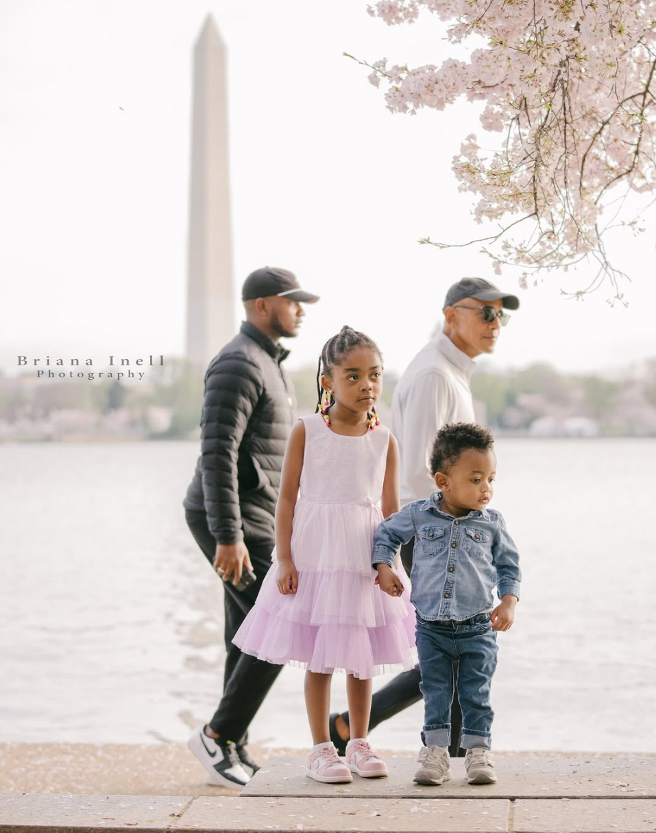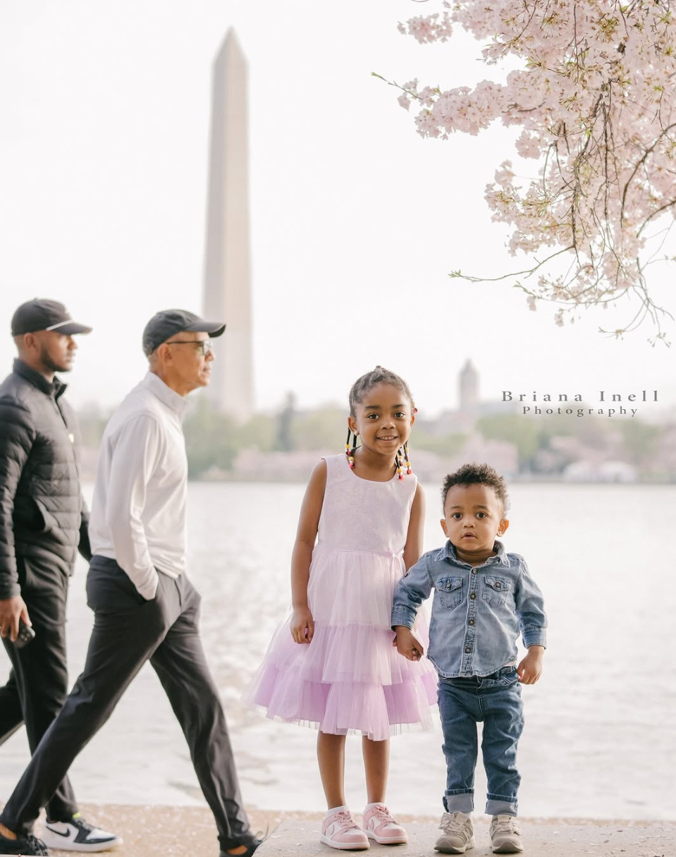 來自維吉尼亞州的一個家庭日前由攝影師伊內爾(Briana Inell)操刀,在華盛頓拍攝櫻花樹下美照。伊內爾當時為事主的一對子女櫻花樹下取景。按下快門時,伊內爾完全沒注意到身後有兩位「特別路人」經過。