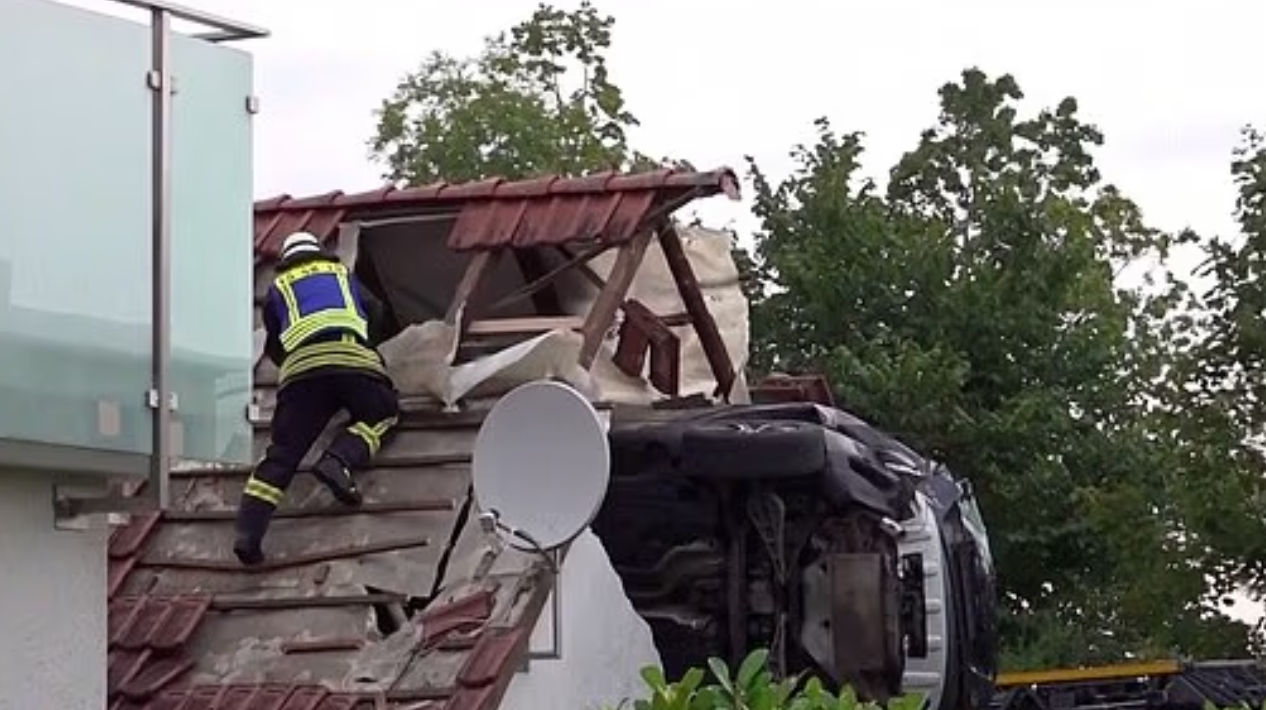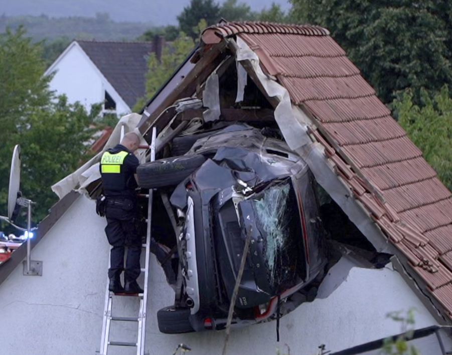 德國西北部小鎮博姆特(Bohmte)周日發生離奇車禍,一輛私家車失控衝出馬路,撞向一名在家中花園彈床上的7歲男童後,再「彈飛」至鄰近距離地面3米穀倉的屋頂,司機及其妻子重傷,男童搶救後情況危殆。