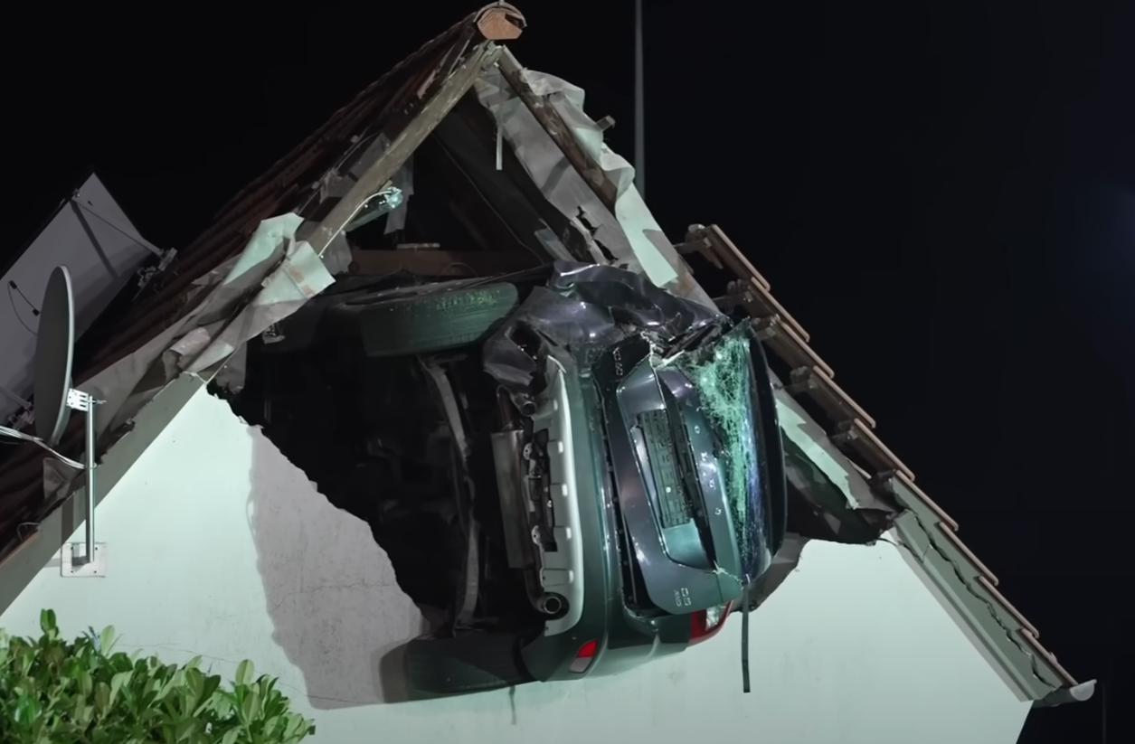 當地警方通報,一輛載有五人的多用途汽車首先撞上一輛停泊在路邊的車輛,之後撞破住宅樹籬衝入花園,撞倒一名正在蹦床上玩的7歲男童。汽車隨後因地面凹凸不平,「彈起」至空中卡在鄰近一座穀倉約3米高的屋頂上。被撞的男童傷勢嚴重,被送往醫院搶救後情況危殆。私家車上42歲男司機,與妻子均告重傷,需接受治療;兩名分別為11歲及12歲的兒子,以及一名13歲乘客則只受輕傷。