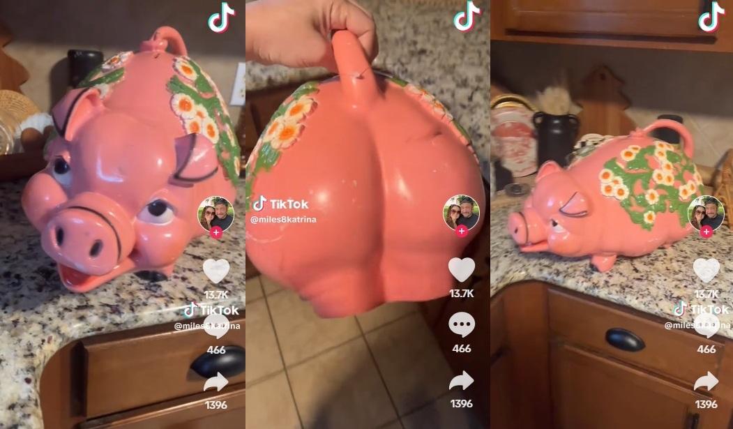 卡特里娜(Katrina)在TikTok分享,她在當地一間慈善二手店尋寶時,找到一個外形有些特別的粉紅小豬錢罌。從影片可見,小豬錢罌身上滿是上世紀六七十年代的立體雕花,加上小豬詭異笑臉,看來十分懷舊。