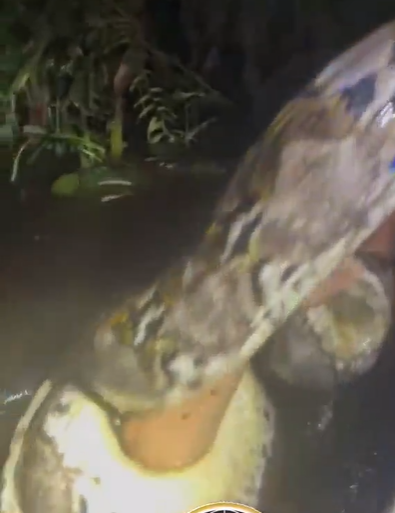 印尼婆羅洲一名經驗豐富的捕蛇專家赫魯(Heru),日前在船上遭遇驚險一幕。當他伸手試圖捕捉一條岸邊巨蟒時,反被這條6米長的龐然大物拖入水中,蟒蛇更迅速纏繞其頸部與身體,場面極其驚險。