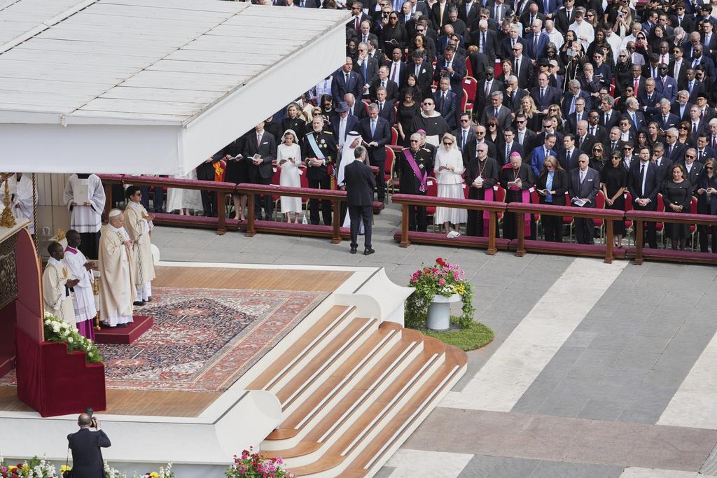 教宗今次就職典禮有約300名領袖及代表出席儀式,包括多位外國政要。其「家鄉」美國由副總統萬斯率團,國務卿魯比奧亦隨團。秘魯總統博魯阿爾特率領的代表團,跟美方一樣獲安排在最前排位置,其他嘉賓包括歐盟委員會主席馮德萊恩、加拿大總理卡尼、德國總理默茲以及澳洲總理阿爾巴尼斯等,而烏克蘭總統澤連斯基亦出席,冀藉機跟其他國家領導人會面。
