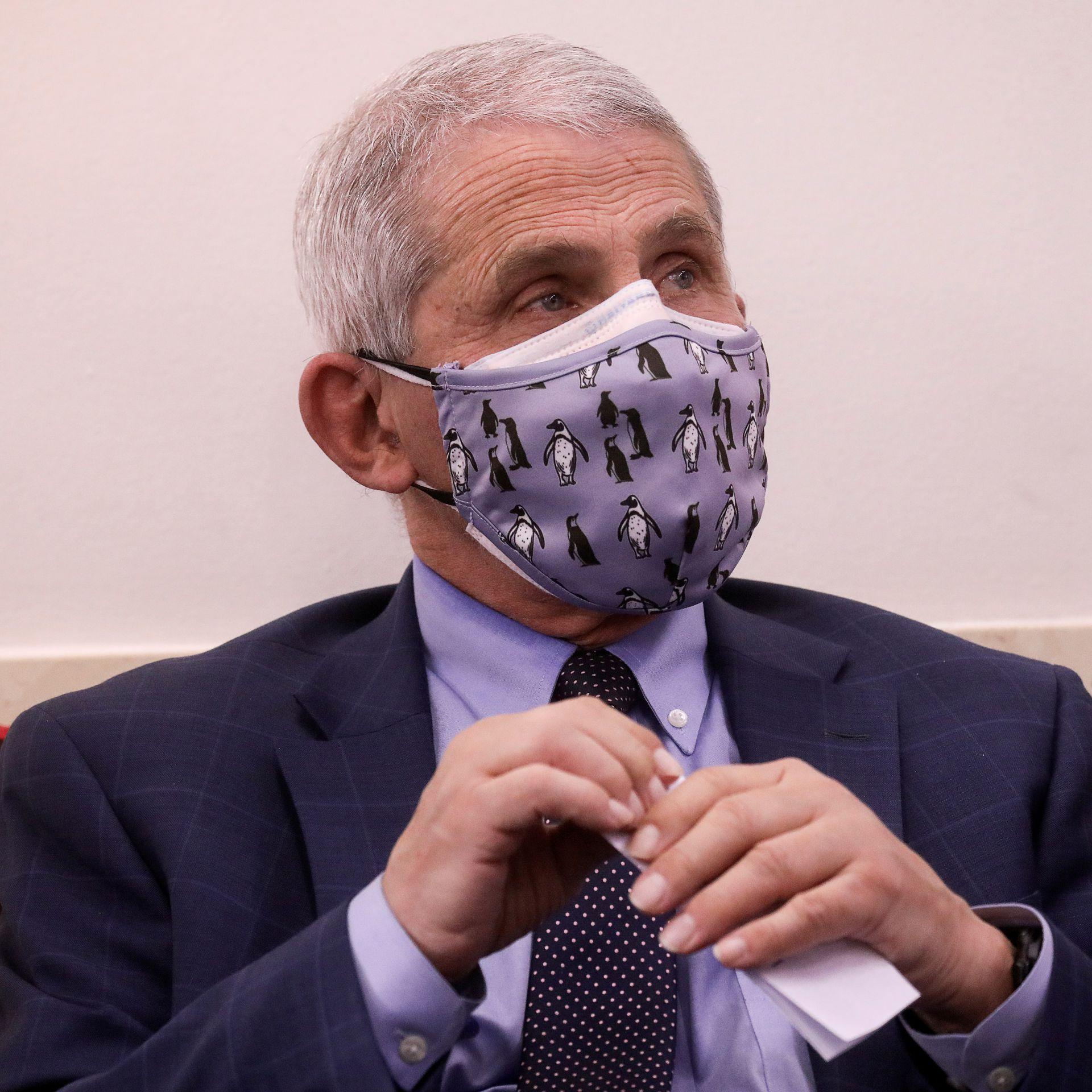 美國傳染病學專家福奇去年建議戴兩個口罩。(資料圖片)