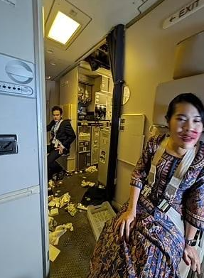 新加坡航空公司一架波音客機,由倫敦飛往新加坡時,因強烈氣流,緊急迫降泰國曼谷素萬那普機場。一名在機上的英國男乘客猶有餘悸,講述事發時的恐怖情況,指他則繫好安全帶,客機便隨即急降,有乘客耳朵出血,機艙內尖叫聲四起,景象嚇人得「超現實」。