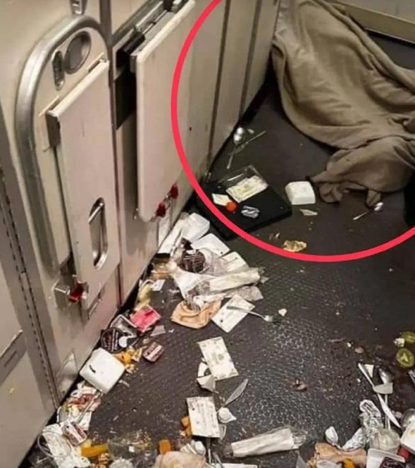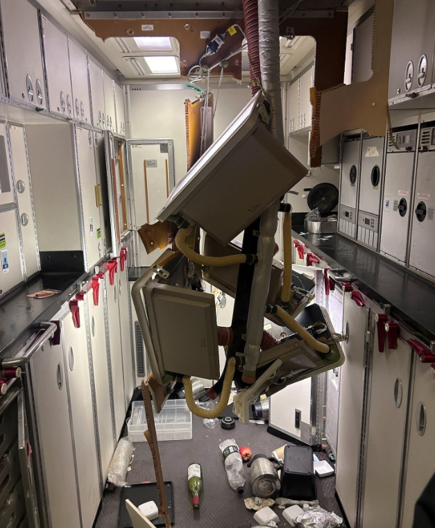 機艙內一片狼藉。(路透社)