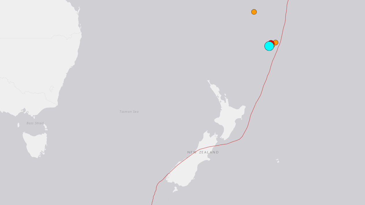 新西蘭附近的克馬德克群島發生7.3級地震。(USGS)