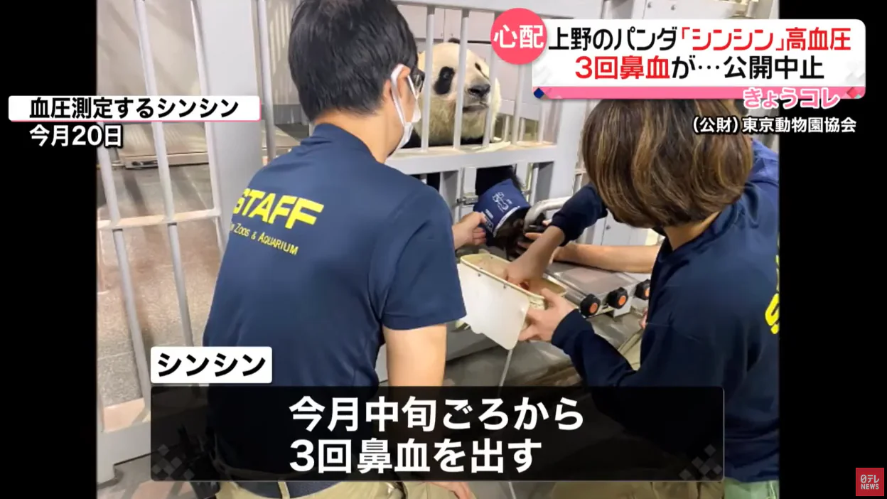 根據上野動物園表示,大熊貓「真真」自本月中旬左右以來已出現3次流鼻血的狀況,而本月20日測量血壓時,證實數值偏高。目前園方已讓「真真」服用藥物,定期測量血壓,並持續監牠的健康狀況,據悉「真真」的食欲和行為沒有變化,狀況還算穩定。