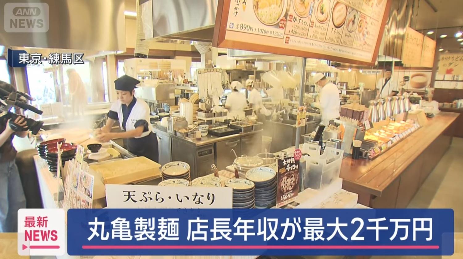 日本連鎖飲食集團的丸龜製麵在今日(17日)公布,他們在日本的分店店長,最高年薪達2,000萬日圓(約106.2萬港元),而且還保障員工的子女可以免費在店內用餐。